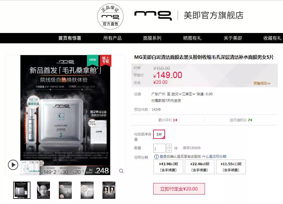 截自美即天猫旗舰店(美即焕肤净亮护理面膜)