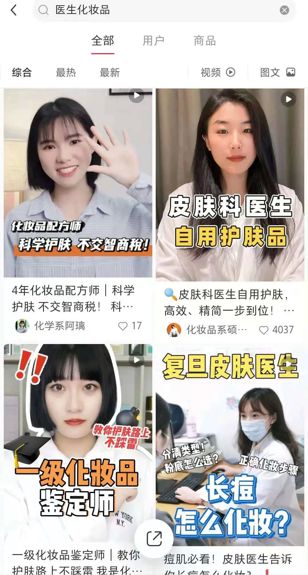 小红书平台上有关“医生 化妆品”的推荐笔记