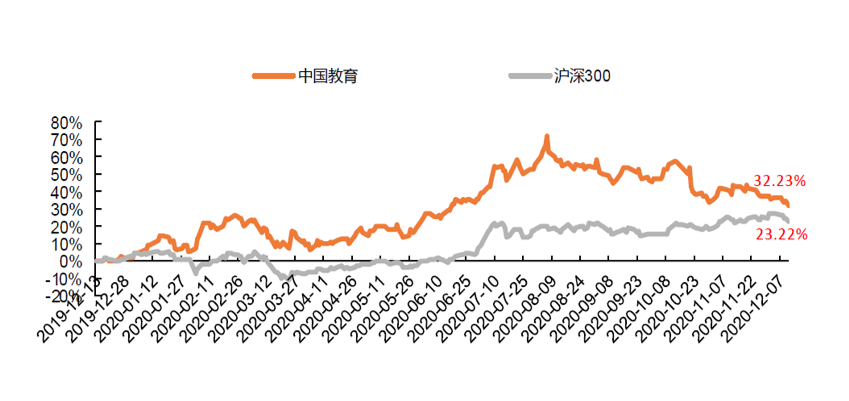 图表:2020年中国教育指数涨幅;数据来源:Wind,平安证券研究所,截止时间:2020.12.11