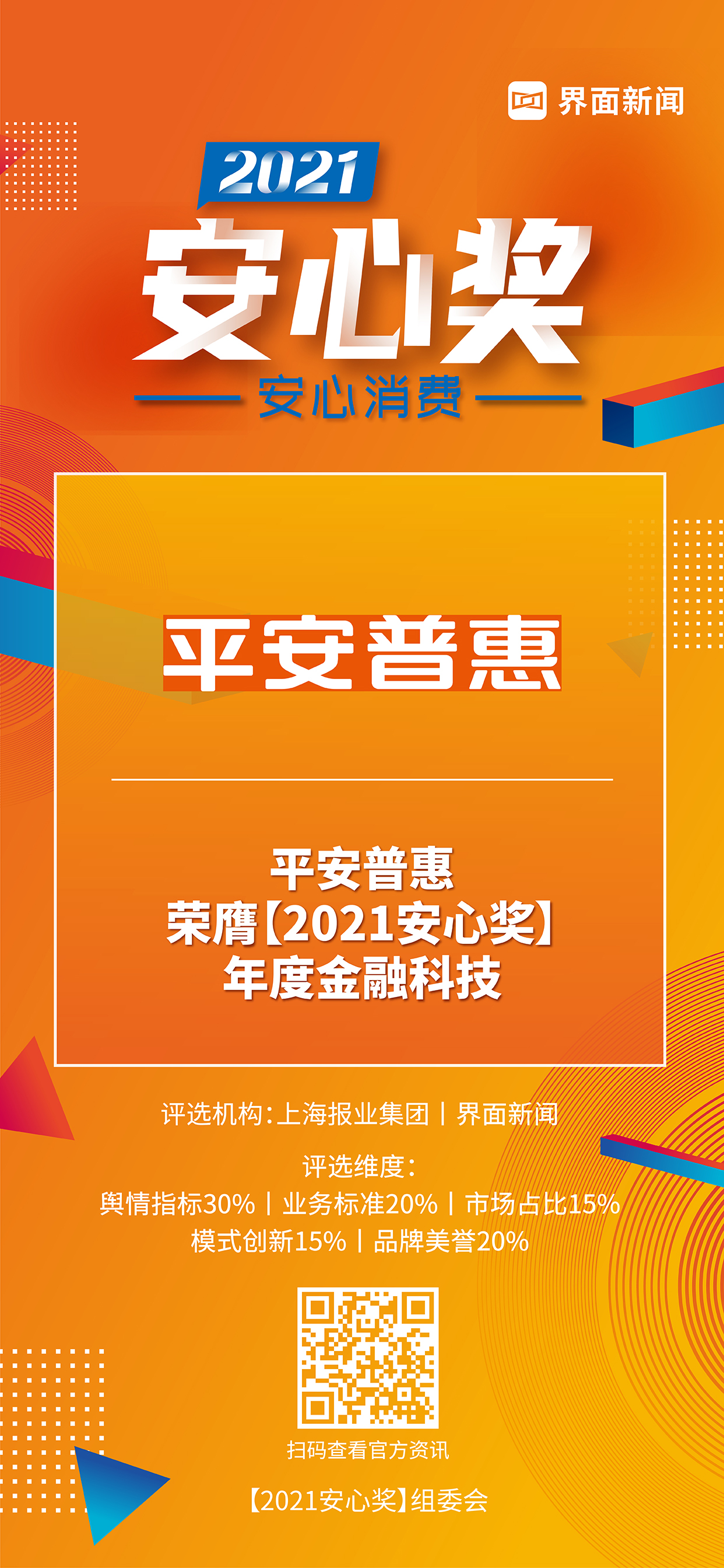 8月5日,上海报业集团|界面新闻在上海静安瑞吉酒店举办了【2021安心奖】颁奖典礼,并正式公布了本年度获奖名单。围绕“安心消费”这一核心价值,来自生活服务、家电、家化、美妆护肤、食品、乳品、饮品等领域优秀企业,突破重围,斩获年度大奖Top40。平安普惠凭借其专业的业务能力和高水平的发展驱动,荣膺年度金融科技大奖。