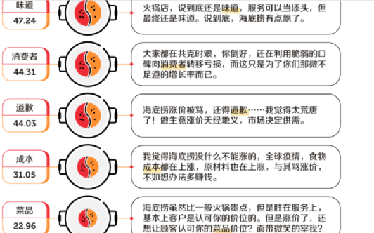 在今年海底捞偷偷涨价引发网友集体不满,吐槽“又贵又难吃”,虽然立刻发布致歉信并恢复原价,但口碑仍是不可避免的滑坡。