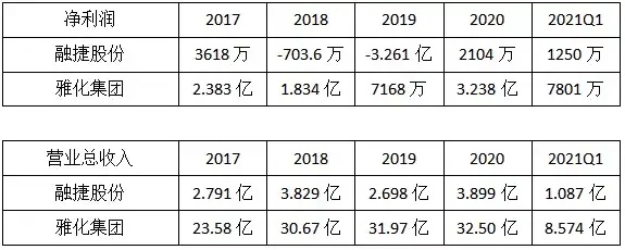 与行业内竞争对手相比,融捷股份市场地位不高,业绩表现不佳