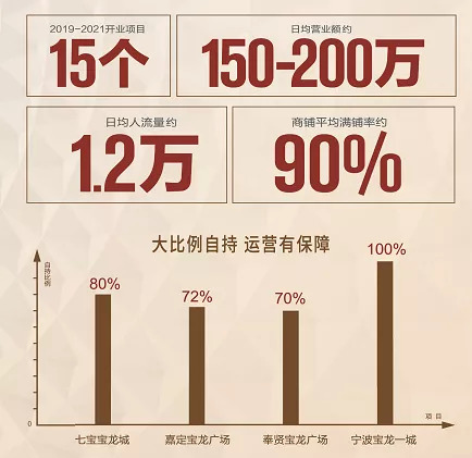 品牌实力雄厚,拥有庞大的资源链,不仅是地产商,更是运营商。在2019-2021年开业了15个项目,这些项目多为品牌大比例自持,运营更有保障,所以日均营业额约150-200万,日均人流量约1.2万,商铺平均满铺率约90%,开业非常火爆!