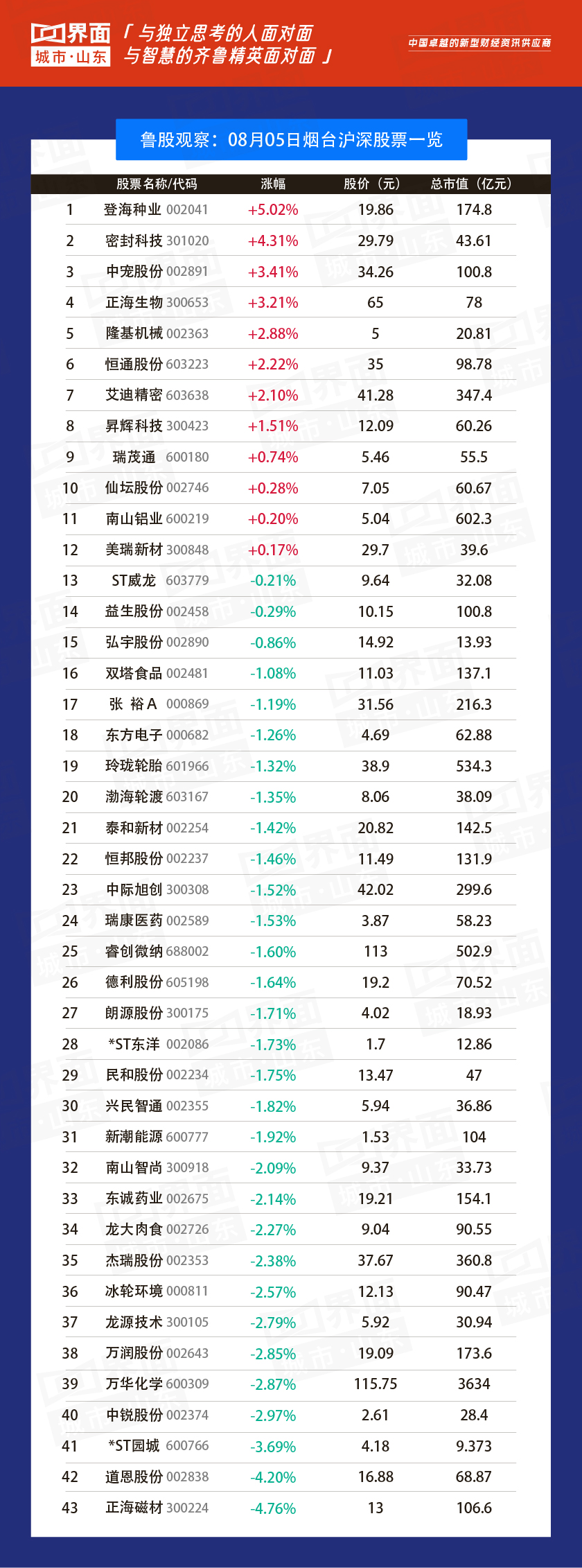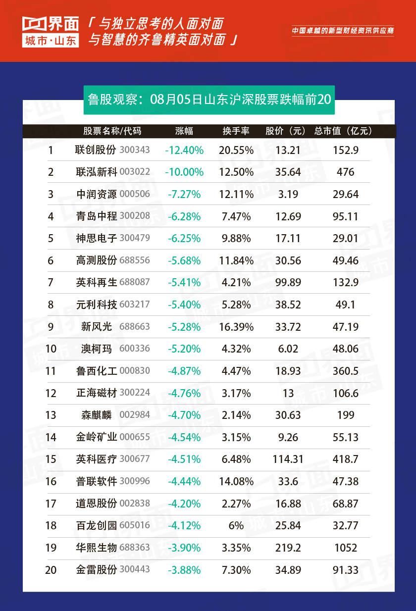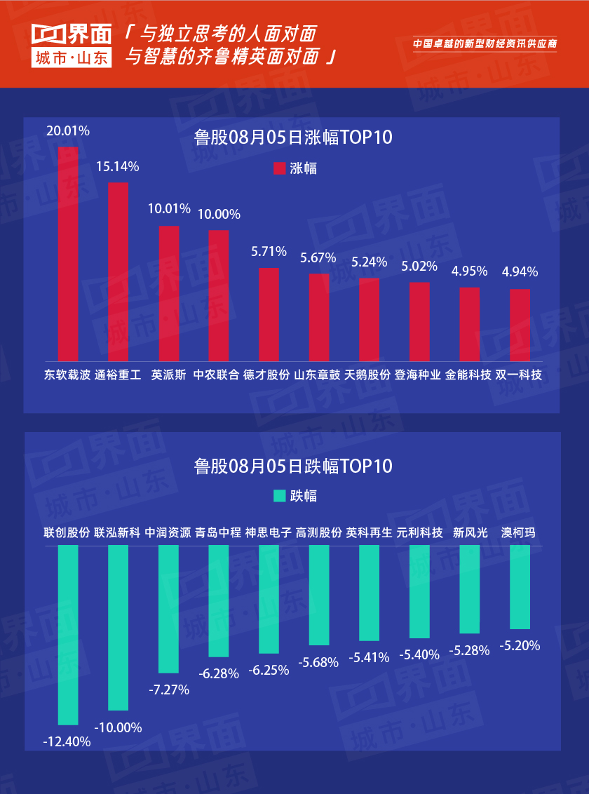 8月5日,山东69股上涨,179股下跌。