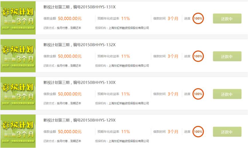 而还有一些不太规范的P2P平台,只显示正在融资中的电影项目,已完成的项目则无法查到详细信息。