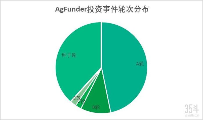 ① 在投资轮次上,专注农业和食品领域种子轮到 B 轮初创公司的的投资,种子轮、A轮、和B轮的投资次数占其总投资次数的 96%。