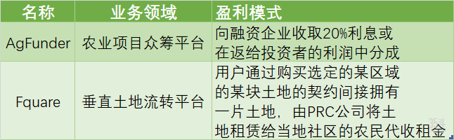 农业众筹模式起源于美国,主要是采用互联网和社交网络,革新原有的农业生产流程。代表案例是 Fquare 和 AgFunder。