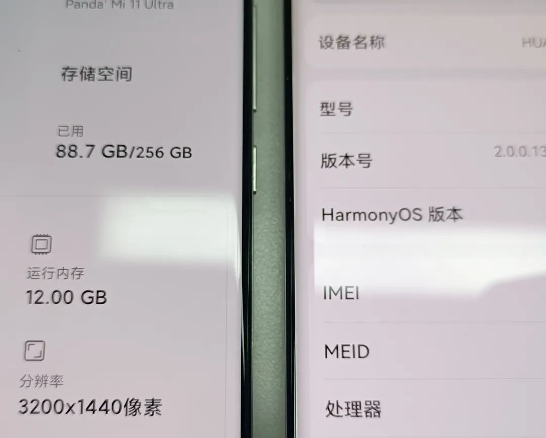 ▲侧边框对比,左:小米11 Ultra,右:华为P50 Pro