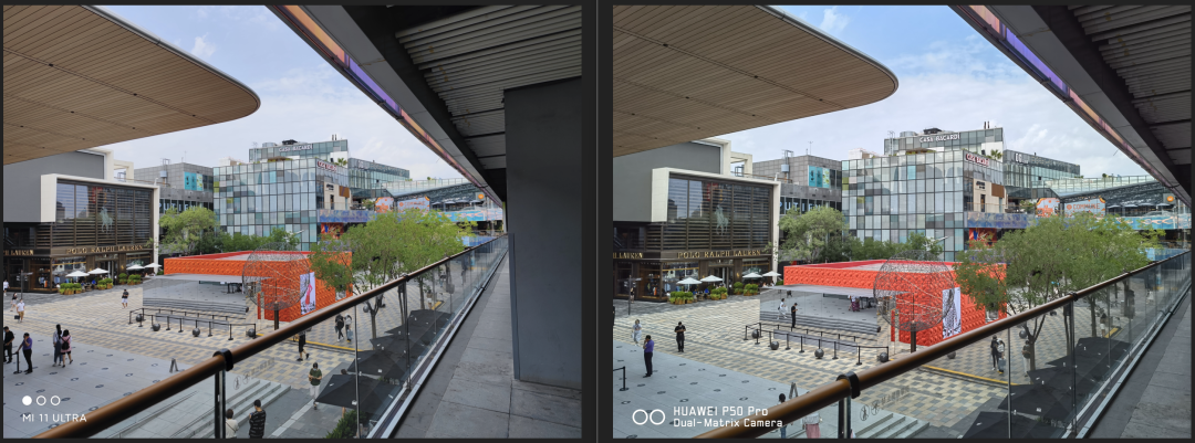 不过在光线充足且拍摄比较宽阔的场景时,两者的差距不大,成像画质、色彩也都比较接近。