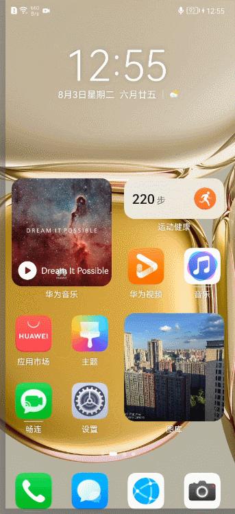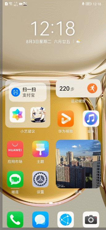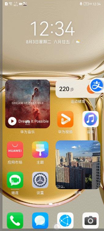 就比如手机解锁进入主界面的动画,就是连贯的,从“小气泡”放大为“大气泡”,最后进入桌面。整体动画没有跳跃。其实这是一个比较小的细节,华为将其称之为“一镜到底”的设计,但就是这样的细节设计,让手机给用户带来的第一感就是比较流畅且一致性的。
