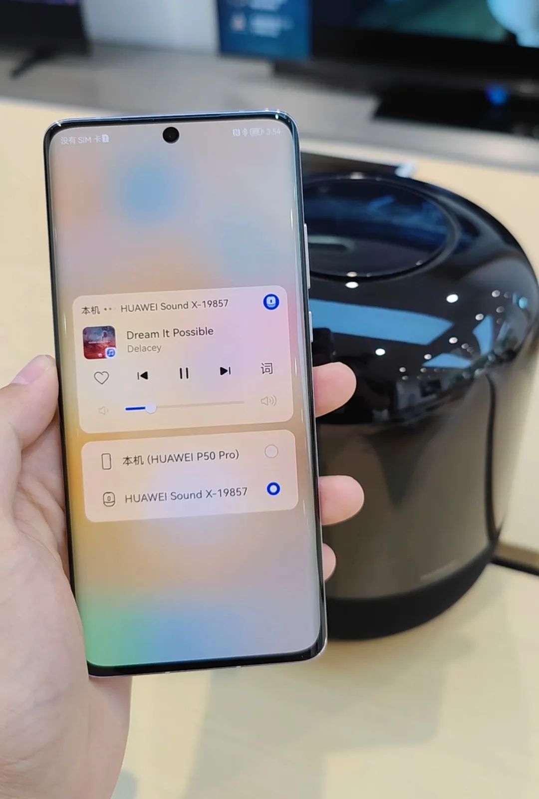 但是,由于店里的产品无法登录我的个人ID账号,所以无法在P50 Pro手机的超级终端功能中展现,当然,这也侧面反映出超级终端连接的安全性是比较高的,非同一ID账号登录的设备是无法直接拖拽连接的,只能通过华为传统的“一碰连”配对。