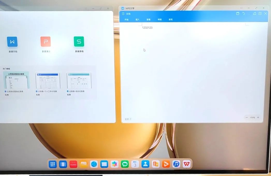 最后,我还尝试了华为MateView显示器与手机连接后实现的“Desktop”模式,也就是显示器上可以呈现出类似PC操作界面的系统,我可以直接在显示器上编辑处理手机上的Word文档并直接保存在手机里,手机就成为了显示器的“主机”。