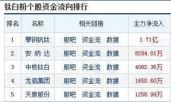 受钛产业利好影响,近期几家归属于钛白粉板块的上市川企均有涨势,截至8月6日收盘,攀钢钒钛、安宁股份、天原股份分别报收3.00元、52.79元、12.35元,涨幅9.89%,3.92%,0.98%。并且,攀钢钒钛和天原股份在8月6日板块资金流向排行中位置靠前,主力资金净流入分别为1.71亿元和1258.99万元,安徽企业安纳达8月6日领涨钛白粉板块,报收17.45元,从10:40起涨停至收盘。