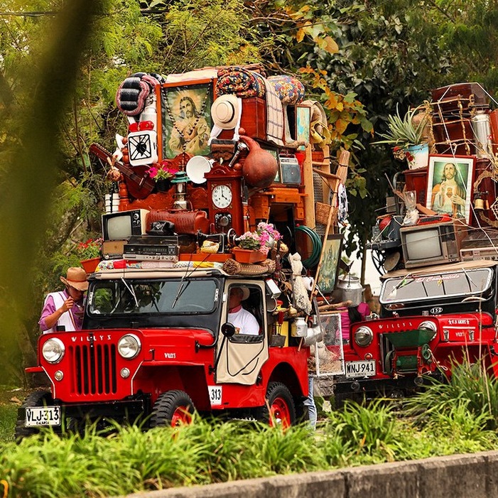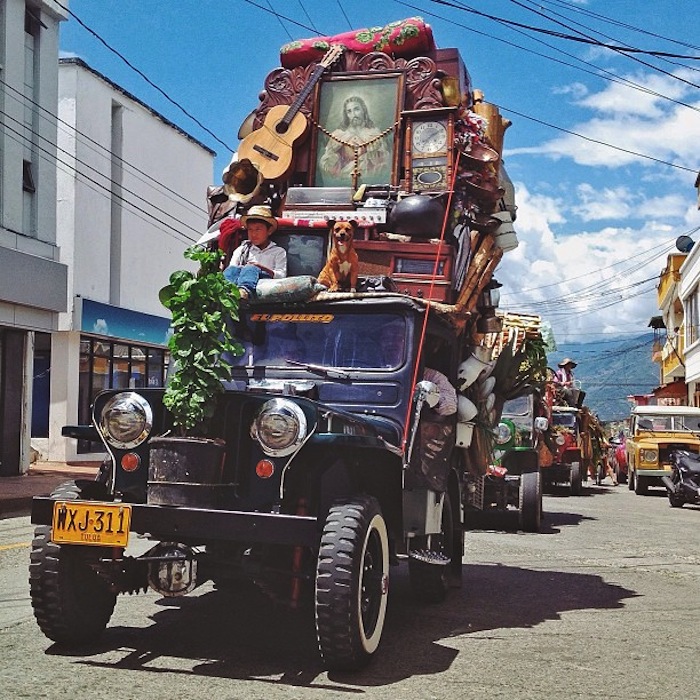 以上这样的景象出现在金迪奥省(Quindío),是当地人崇拜吉普车的一种方式。
