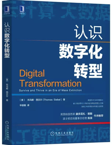 《认识数字化转型》的作者托马斯·西贝尔(Thomas M. Siebel)从从业者的视角,探讨了云计算、大数据、人工智能和物联网技术对企业的冲击,紧紧扣住企业生存发展与数字化转型命脉相连的主题,展示了法能能源公司、意大利国家电力公司、卡特彼勒、约翰迪尔、3M和美国空军等企业和公共服务领域是如何利用大数据和人工智能实现数字化转型并取得了繁荣发展,最后给出了可供企业参考的进行数字化转型的路线图。