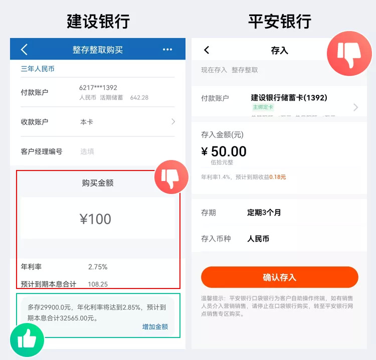 这方面建设银行和平安银行通过强提醒、明确告知用户提前支取会按照活期利率计息,活期利率是多少,损失的定期利率收益是多少,避免用户误操作造成损失。