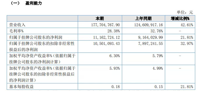 8月3日晚,芭薇股份发布2021年半年度报告,报告期内公司实现营业收入177,704,767.90元,同比增长42.61%;归属于挂牌公司股东的净利润11,162,724.12元,同比增长21.81%。