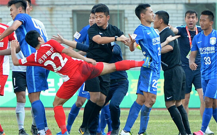 这已经不是中国足坛第一次出现球场群殴的情况了,2009年十一运会,在天津与北京的男足比赛后,天津多名球员冲过安保人员的防线满场追打主裁判何志彪,为了躲避追打,后者一度摔倒在地,起身后继续跑走。事后,中国足协开出了历史上最重的一张罚单:天津球员赵世桐被终身取消注册资格,他的队友郝腾蛟、耿鑫、范志强等6名球员分别被处以二至三年的停赛处罚,另有两名球员分别被处以停赛五场和十场的处罚,同时被取消的还有天津全运会男子足球甲组代表队的比赛资格。