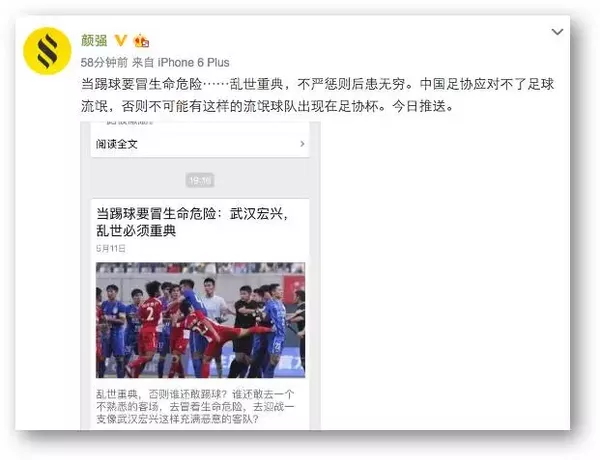 朋友圈的确一向以流言纷飞著称,生态圈(ID:Eco_Sports)也跟颜强老师一样,不敢保证这些流言是否全部属实,然而,我们总可以相信我们亲眼看到的视频和图片吧?即便宏兴不是一支“涉黑”的球队,也在体育道德方面让人感到汗颜。通过业余联赛竟选出了这样“流氓地痞气”的球队,该队多次闹事竟然还能获得足协杯的参赛资格,不得不让人对业余联赛、甚至是我们的足协杯都捏了一把汗——我们的足球根基,还有救吗?