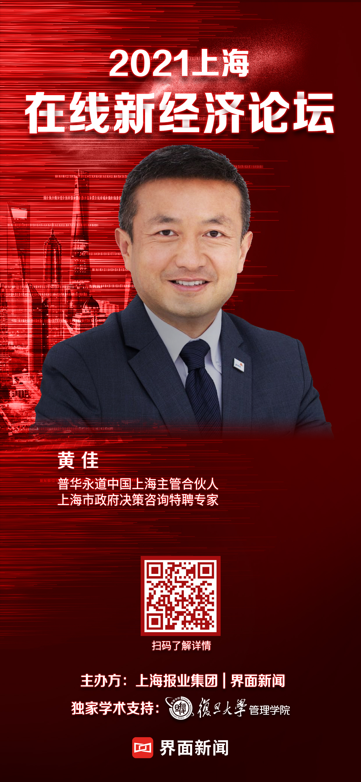 2021年上海在线新经济论坛将于8月19日在世界最高会议厅——上海中心J酒店举办,黄佳先生将在论坛上围绕企业数字化转型时期遇到的痛点进行实践分享。
