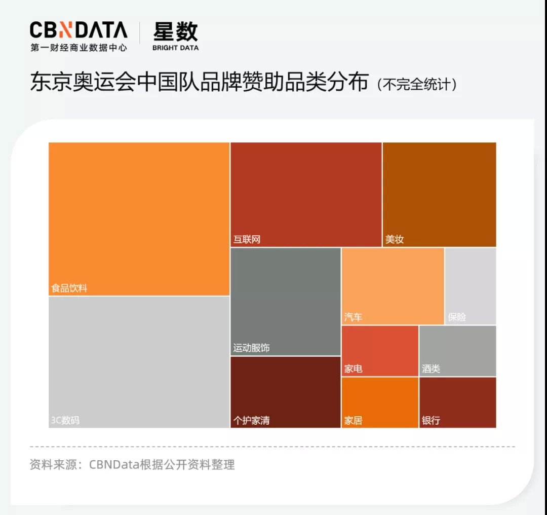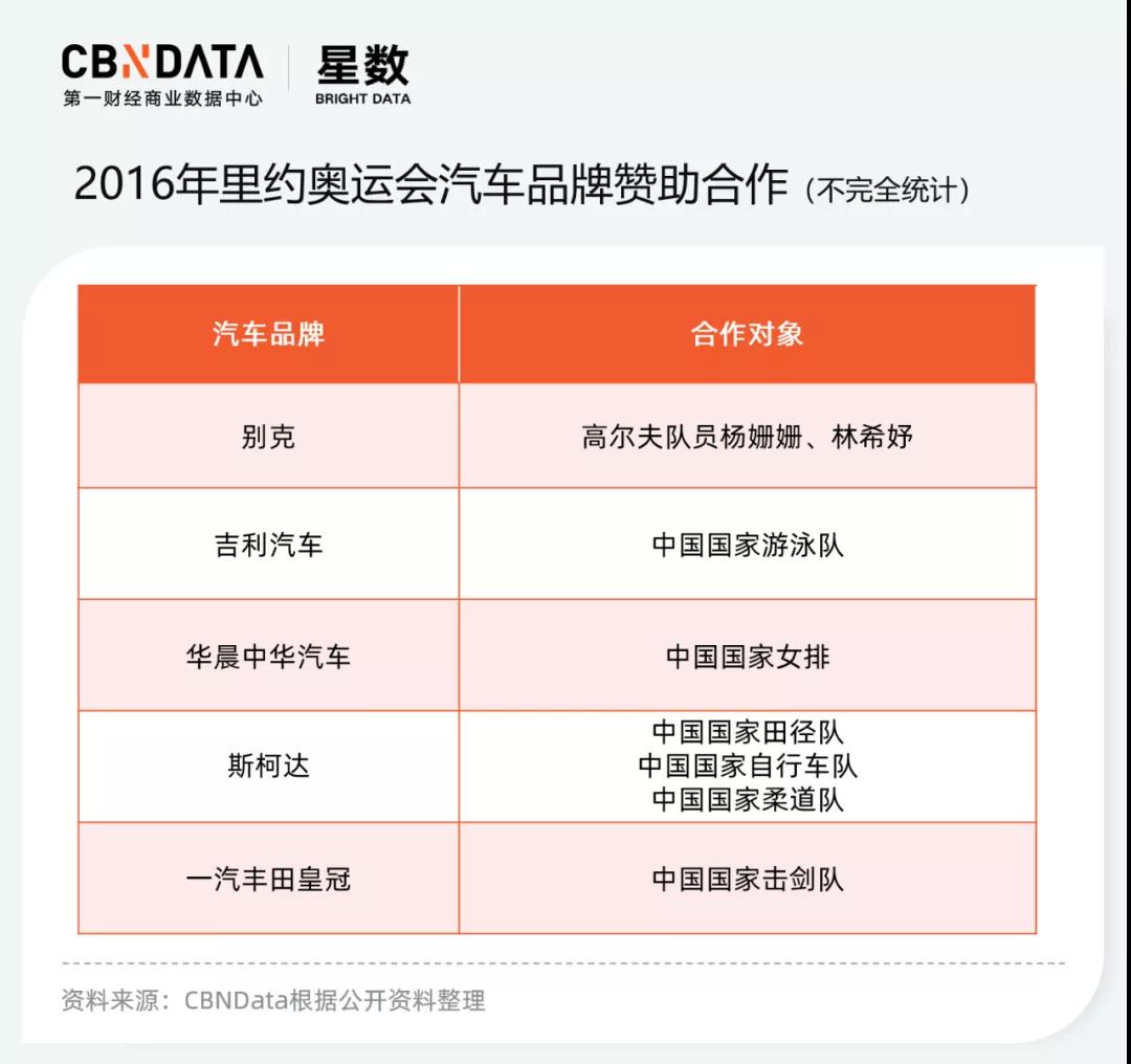整体来看,赞助涉及食品饮料、运动服饰、互联网等多个品类。值得一提的是,相较上一届里约奥运会,今年选择赞助中国体育代表队的汽车企业明显减少,红旗汽车以中国女排官方合作伙伴的身份出现,别克的合作对象也仅为两位高尔夫选手。
