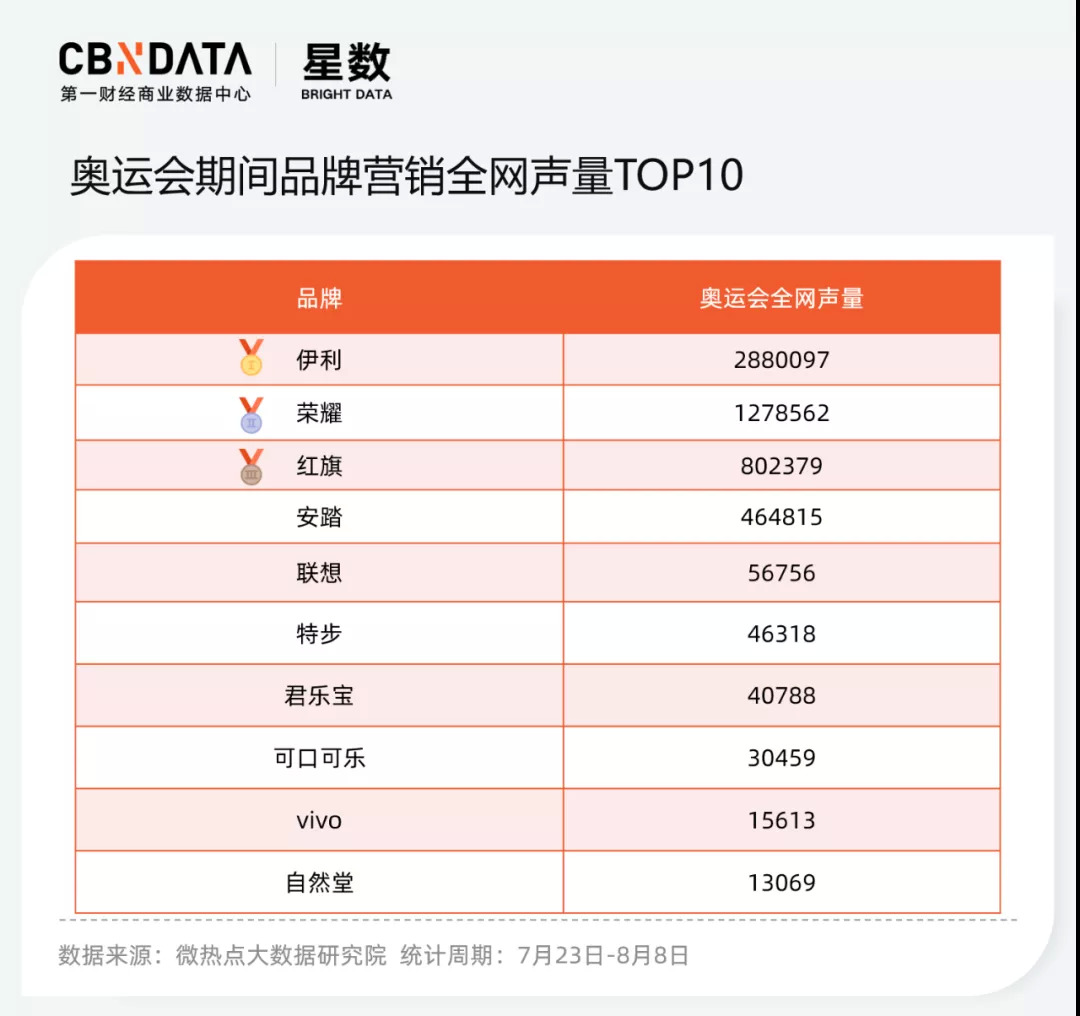 据红旗官网显示,红旗H9是一款C+级豪华轿车,官方指导价为30.98万元~53.98万元。截至8月8日,中国队金牌数为38枚,每辆赠车以30万元的最低价格计算,一汽红旗此次大手笔总价值将超千万元。此举也引发网友讨论和好评,仅1天,#为中国健儿送红旗H9#话题阅读量便超过4000万。从声量来看,红旗汽车已然在一众赞助商中脱颖而出,在奥运品牌榜单的热度排名第三。
