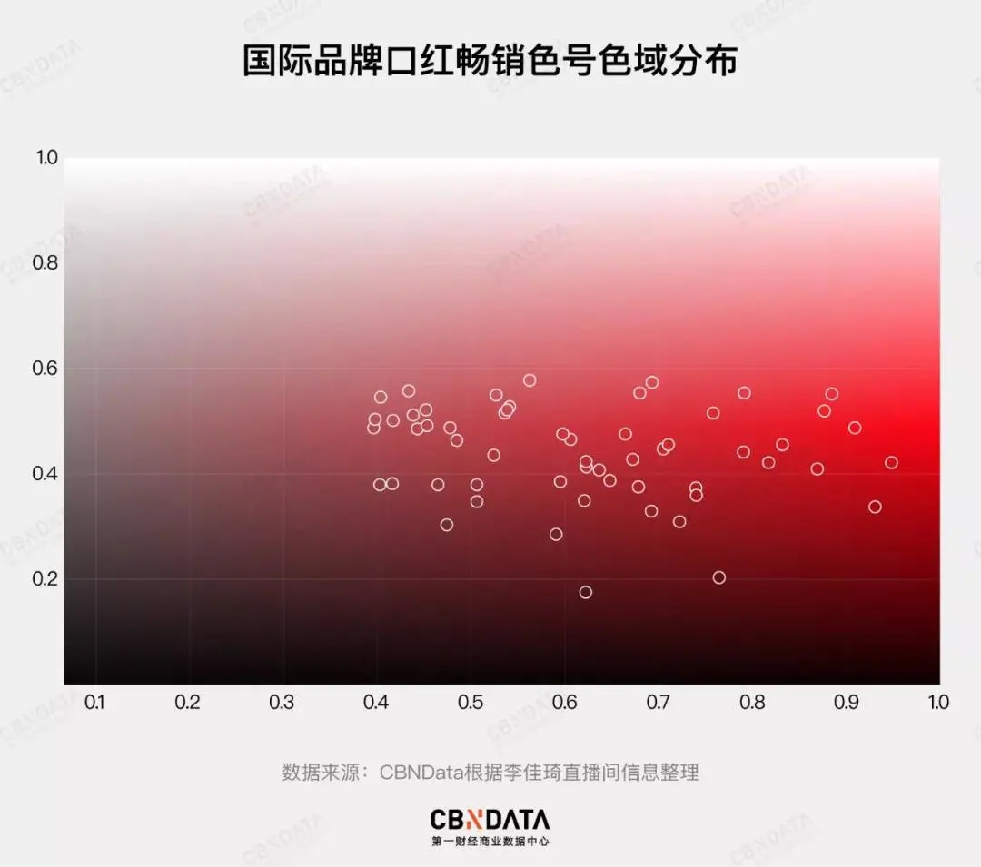 价格战之外,回到产品本身来看,各个国产品牌在色号设计上的把握几乎如出一辙。CBNData选取了一对国际和国货品牌的口红色号,计算了它们的口红颜色分布集中度。