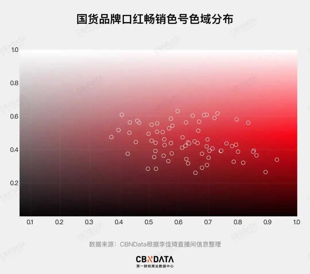 由这两张分布图可以发现,国产口红的色号分布相对集中。各大国产口红品牌,从近年推出的几个口红系列来看,不同系列之间色号都具有一定的相似性。