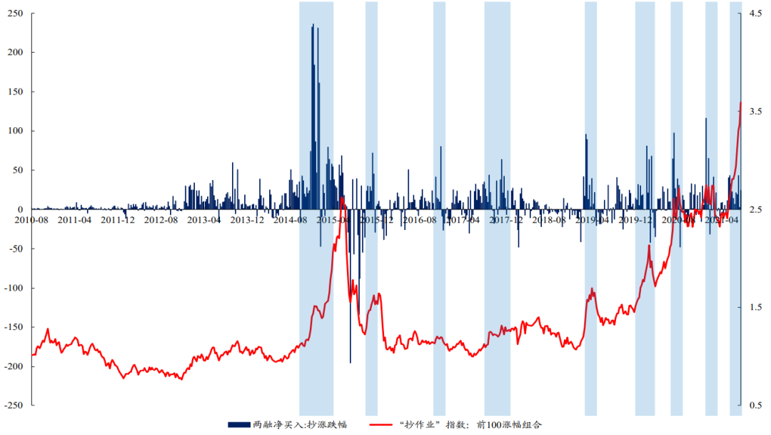 对于“抄作业”指数中的“抄涨跌幅”组合,两融往往会在该组合上涨阶段的中后期大幅买入该组合