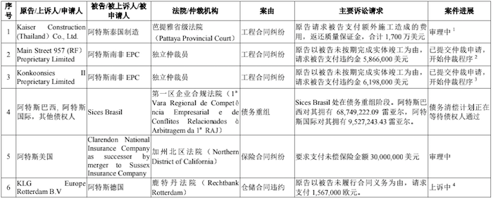 此外,阿特斯还有与境外公司存在多起合同纠纷,合计5906.4万美金、7827.64万雷亚尔以及156.70万欧元。