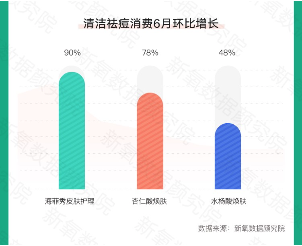 从6月份的环比增速来看,海菲秀皮肤护理、水杨酸焕肤增速最快,达到90%和48%。