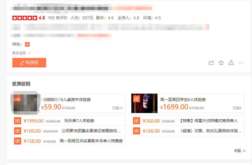 虽然现在能够在抖音号、公众号、小程序等多个不同的平台上看到关于剧本杀的评测内容,但圈内并没有出现一个现象级的账号或是KOL。相反,大众点评可能是吸引周末聚会,第一次尝试剧本杀的年轻人最直接的流量入口。