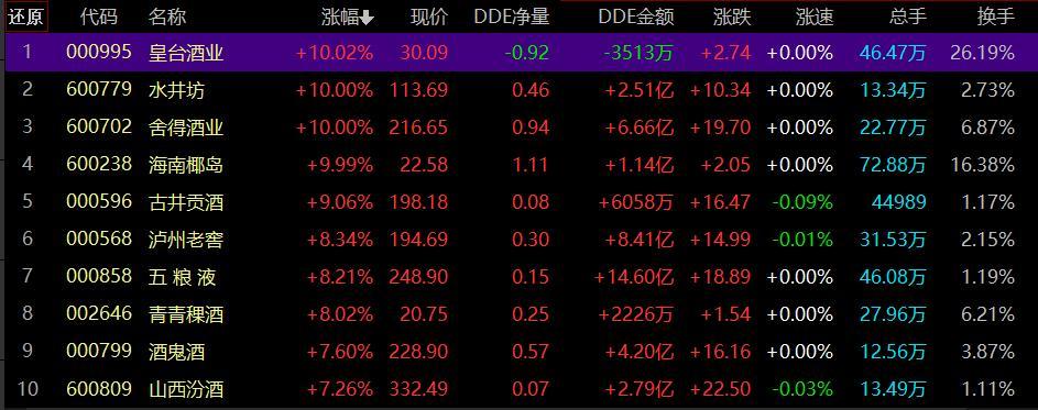 白酒熟悉的味道又回来了?8月10日,白酒板块大涨,皇台酒业、水井坊、舍得酒业、海南椰岛纷纷涨停,古井贡酒、泸州老窖、五粮液、山西汾酒等股价也出现大涨。