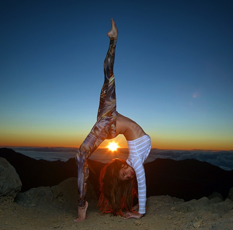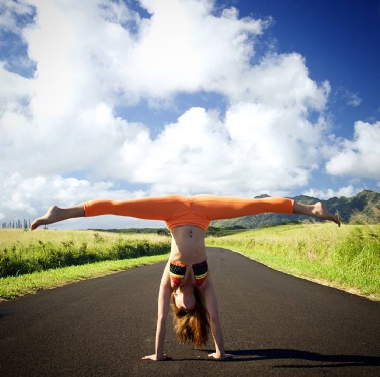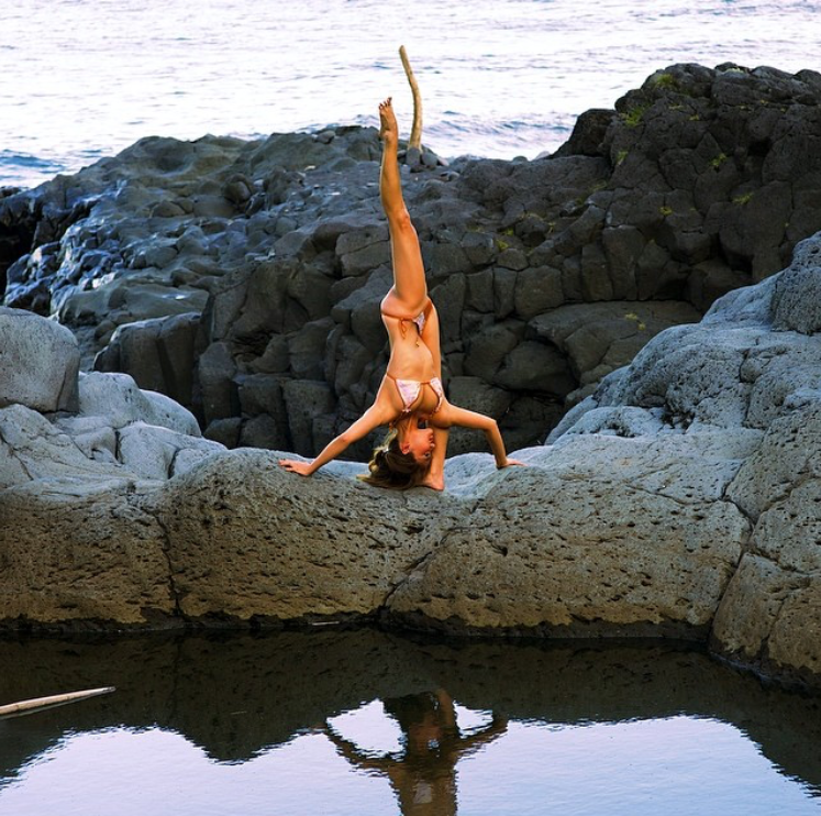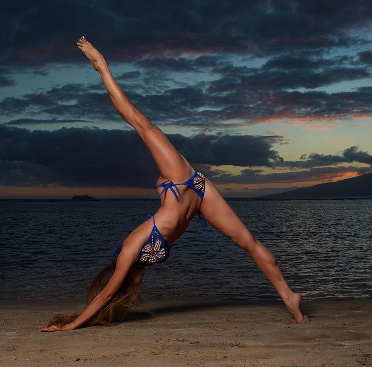 原本住在纽约,可能是瑜伽需要心灵净化,所以搬到了夏威夷的茂伊岛,随手就把海边啊、乡间小路啊,草地啊,岩石啊拿来当瑜伽馆。