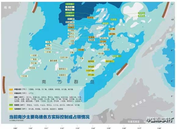 而中国长期以来只有太平岛在台湾当局占领之下,中国大陆在20世纪80年代末开始控制并驻守较小的六个岛礁,1994年在美济礁上建筑了渔船避风设施。