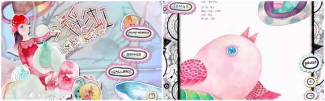 打开蛤小蟆C.A.T.专辑页面,我们看到了一幅前所未有的“景象”:屏幕上飘着浮云,背后是亦真亦幻的音乐世界,点开一首歌,你可以看到充满童真 的小动画。如果你愿意,给以给地球上色,可以点击若隐若现的人群,为蛤小蟆干净轻柔的嗓音、充满臆想天马行空的歌词以及甜美清新的旋律,带来了童话色彩。