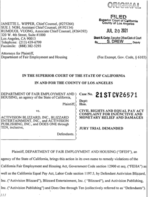 日前,美国加州公平就业和住房部(简称DFEH)经过长达两年的调查,对动视暴雪正式提起起诉。DFEH指出,动视暴雪对待女性员工同工不同酬,提拔女性员工速度低于男性,解雇或强迫女性辞职的频率高于男性。此外,该诉讼还详细地描述了动视暴雪女员工遭遇了多种形式的性骚扰。