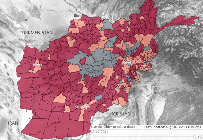 但在短短五天内,阿富汗已有九个省首府被塔利班攻陷。8月10日一天,塔利班拿下了西部法拉省首府法拉、北部巴格兰省首府普勒胡姆里以及东北角巴达赫尚省首府法扎巴德。