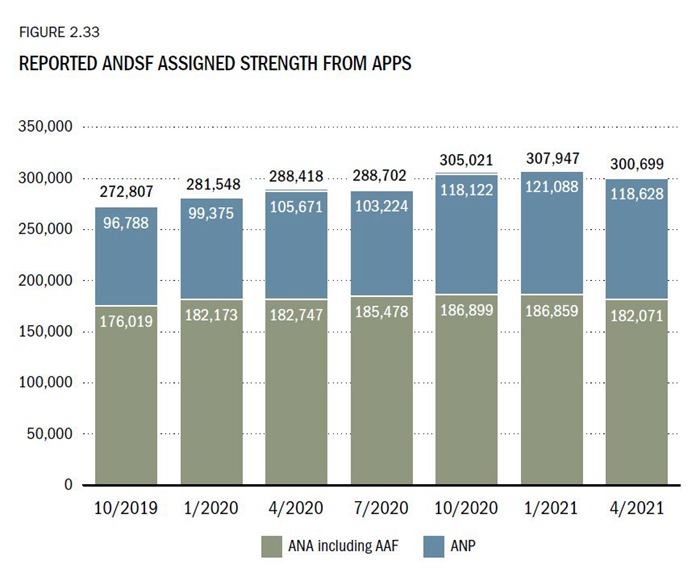 阿富汗重建特别监察长办公室7月底发布的季度报告显示,截至4月,阿富汗有300699名军警,其中军人182071人。