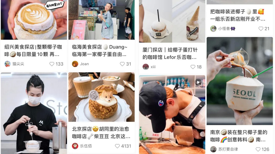 年初,椰子蛋咖啡走红,在小红书上获赞无数,成为很多咖啡门店的流量款。