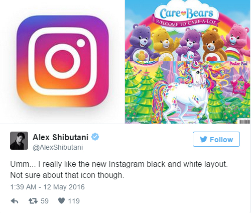 在Instagram内部人员看来,他们对这个新的设计充满信心。Instagram的设计总监Ian Splatter表示,新版应用图标提取了老版的精华。他在一篇博文里写道:“我们让员工在5秒内凭记忆画出Instagram的图标。几乎所有人都画了彩虹、镜头和取景器。”他认为这次改版的主要目的是让用户更专注于他人分享的内容,而新设计的灵感来自于用户们每天分享的丰富内容。