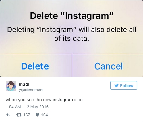 就在5月12日,Instagram对应用进行了升级,放弃了一贯使用的复古相机样式的Logo,改为了一个霓虹色更加扁平化的设计。这是这款风靡全球的图片应用推出5年来,第一次改变应用图标。