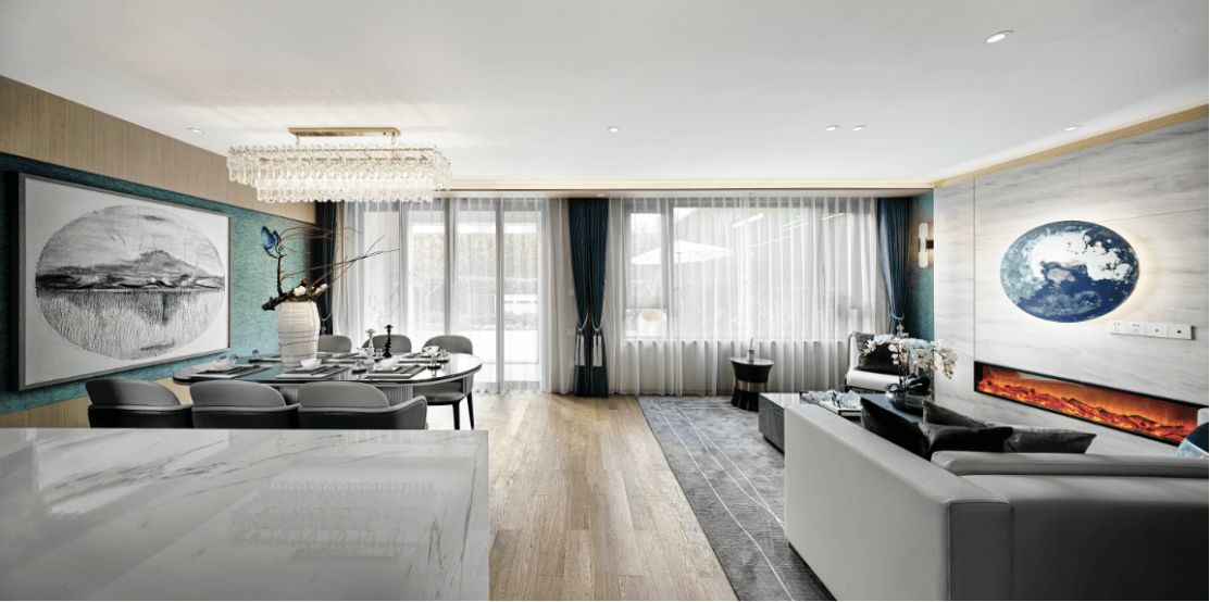 深入到更细节的地方,我们会发现,融信·海月平湖在叠墅的空间设计上,横厅全部采用约7.7m的阔绰尺度,而市面上同等面积段的产品,横厅的尺度一般在7米左右。因此,在融信·海月平湖,居者收获的还有更多通风、采光面,以及更高的空间利用率。