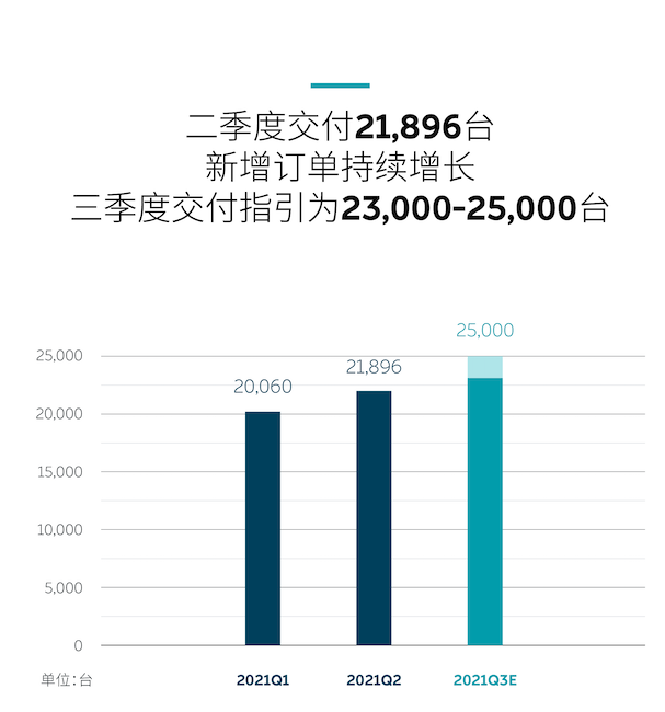 预计交付方面,三季度交付指引为2,3000至2,5000台,环比增长5.5至14.2%。