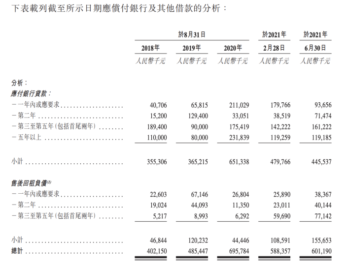 截至2021年6月30日,景大教育的借款共计6.02亿元。其中,一年内应付银行贷款9365.6万元。