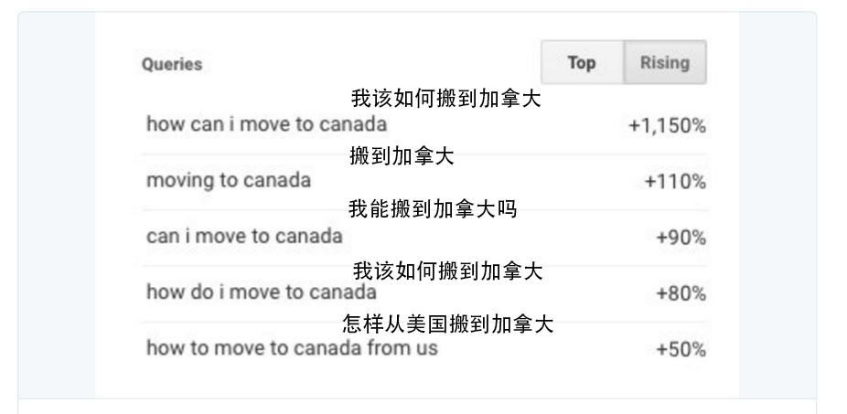 在这之前,“搬去加拿大”条目的搜索量飙升的事情也曾上过新闻。