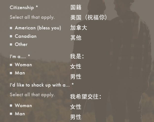 另外,你需要选择自己的国籍。在美国这一选项的后边,创办者悄悄地加上了一句——祝福你。