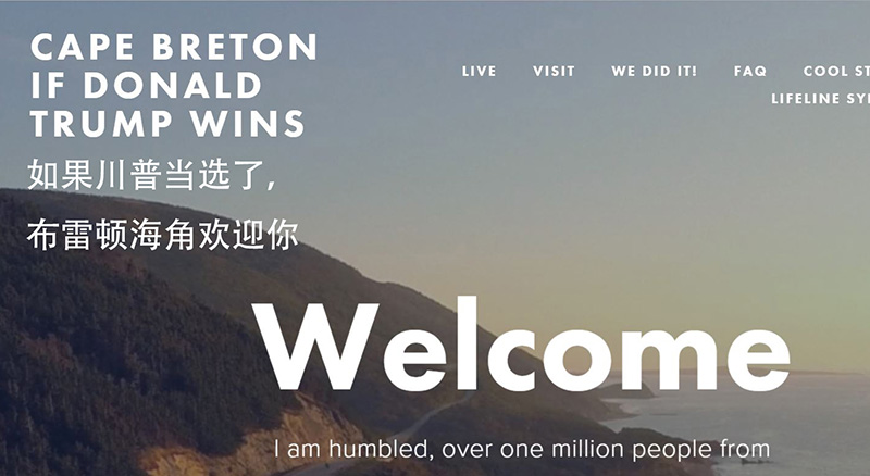 一个加拿大岛屿——布雷顿海角,已经做好了迎接美国移民的准备,并且建立了一个网站名为:如果川普当选,布雷顿海角欢迎你。