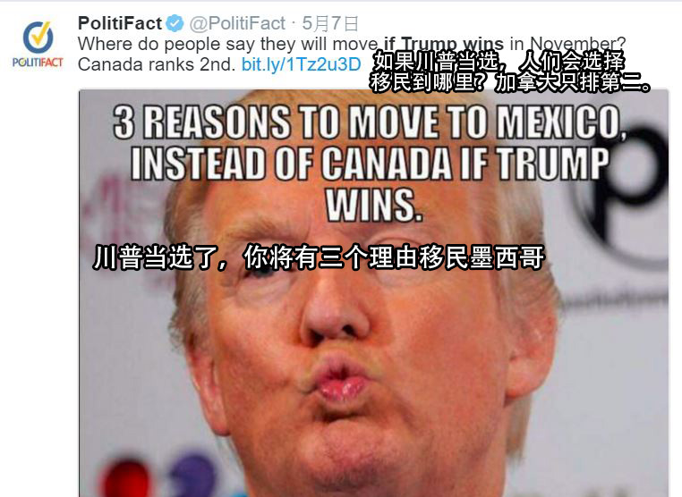 如果真的是这样一个人当了美国总统,我们该怎么办——美国政治新闻网站Politifact可是说了,有将近五分之一的美国人表示,我们要移民加拿大!