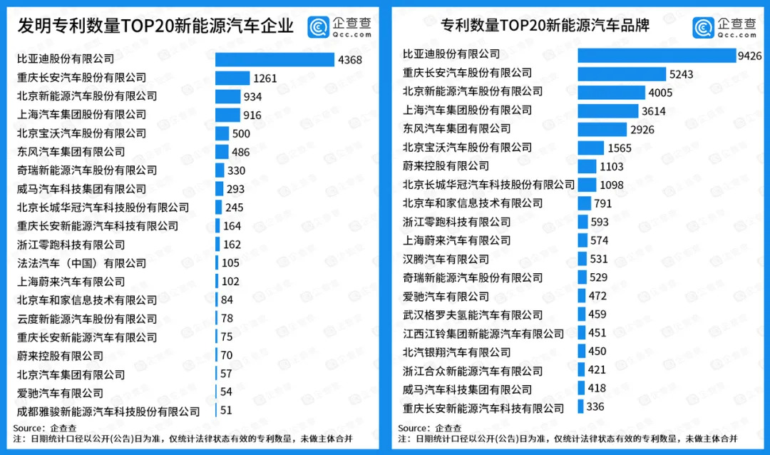 而从企查查公布的汽车专利数量来看,这三家的表现也并不亮眼。理想在关键的发明专利数量上仅有84件,与比亚迪的4368件专利相比捉襟见肘。